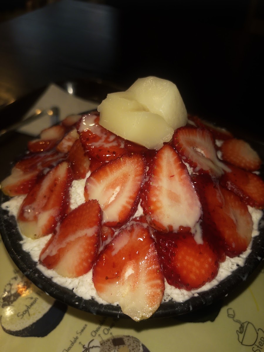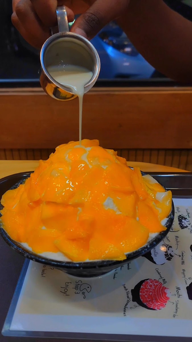 A delicious addition to the San Ramon area! I have now been here twice since the open and each time have been pleasantly surprised with just how delicious the food is, and how lovely the ambiance is! The Bingsuu served here is fresh, lightly sweetened, and a real delight, especially on the hot summer days. So far, I’ve had the mango, strawberry, matcha red bean, and chocolate flavors, with my favorite being the mango for how fresh and sweet it was. All dishes come with a small serving of sweetened condensed milk for added creaminess. Note: the portions are huge! (As is traditional of this dessert). I recommend splitting with someone, maybe two people, even for the regular size.