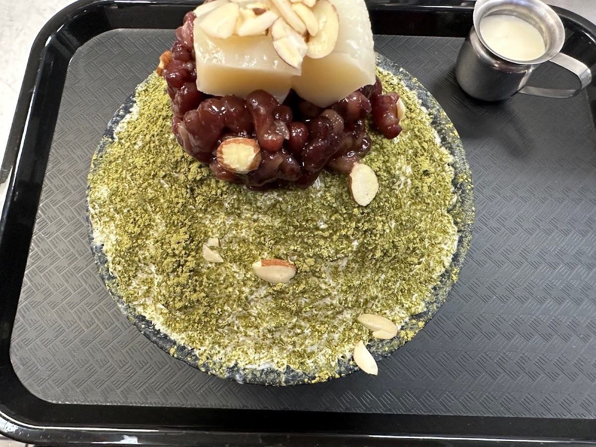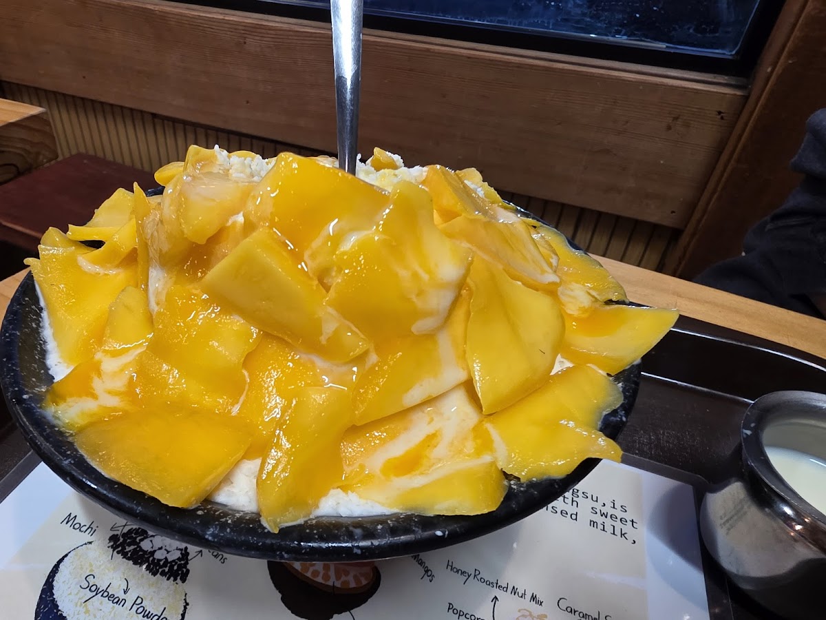 The best bingsoo I've had ever. The ice is so fluffy and fine and not from water but something very lightly sweet and creamy. The condensed milk is also lighter than usual and served on the side, so you can get just the right amount. The injeolmi toast and passion fruit tea were also excellent, but what I'm really looking forward to trying next time is the mango bingsoo which boasts fresh mango and house made mango syrup!